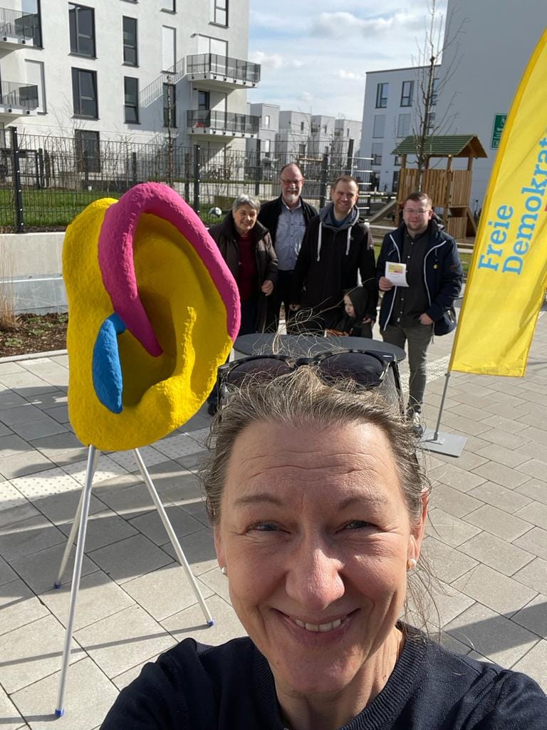 Wir waren als OV08 am vergangenen Wochenende in Unterbach unterwegs. Mit dabei: das offene Ohr 🙂 Das lässt sich super transportieren, zu zweit aufstellen und regt nicht nur auf dem Bürgersteig die Bürger zum innehalten an, sondern ist auch noch von der Straße aus gut zu sehen. Gebaut unter Federführung von Norbert Fuchs und tatkräftiger Unterstützung von Thomas Wolk steht das offene Ohr nun auch allen Ortsverbänden für eigene Initiativen und Veranstaltungen zur Verfügung! Und